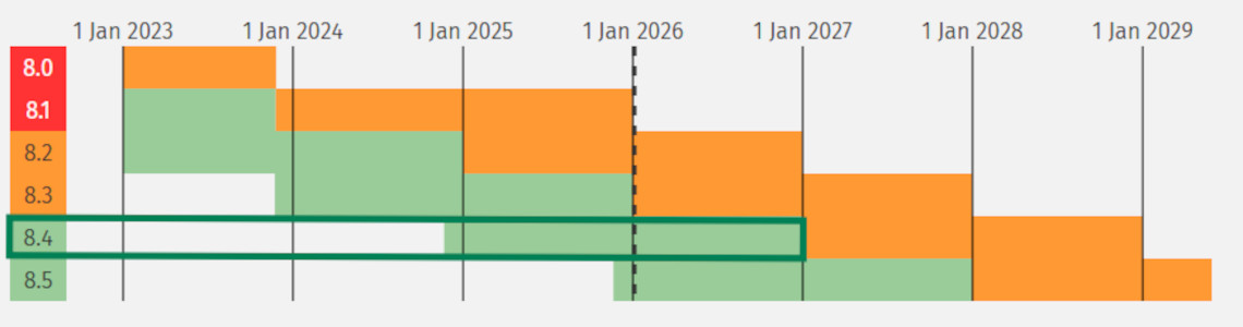 PHP-versies overlappen elkaar in ondersteuning, wat betekent dat er twee actieve versies volledig ondersteund worden, terwijl twee oudere versies alleen nog beveiligingsupdates krijgen. Dit is hoe de huidige situatie eruitziet: